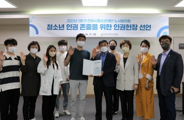 재단은 올해 초 ‘사람 중심의 청소년 인권 도시 안양 조성’을 위한 안양시청소년재단 인권경영 실행계획을 수립한 가운데, 분기별 노사협의회 운영 반부패 청렴 계획 수립 및 청탁금지법 헬프데스크 운영 직장 내 괴롭힘 신고센터 운영 갑질 실태 파악 설문조사 실시 등 인권경영 실천을 위해 내부적으로 관련 규정을 제정하고 제도적 장치를 마련하고 있다.