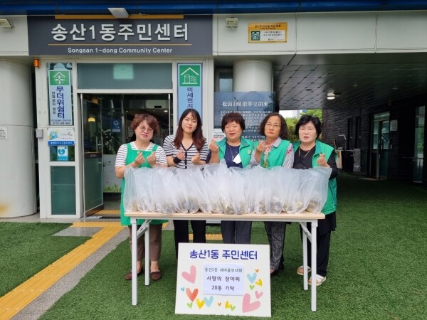 송산1동새마을부녀회는 매년 열무김치, 고추장·된장, 밑반찬 등을 직접 만들어 나누고 이웃돕기 장터 운영으로 모인 수익금을 기탁하는 등 지역사회를 위해 활발한 나눔활동을 전개하고 있다.