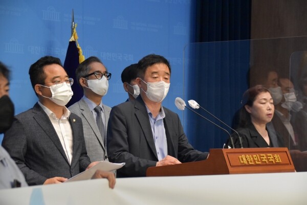 이날 기자회견에는 강득구 의원과 더불어, 민병덕 의원과 자영업자소상공인중앙회 정인대 회장, 김경배 회장 등이 참석해 ‘대형마트 의무휴일 폐지 반대’ 발언을 이어갔다.