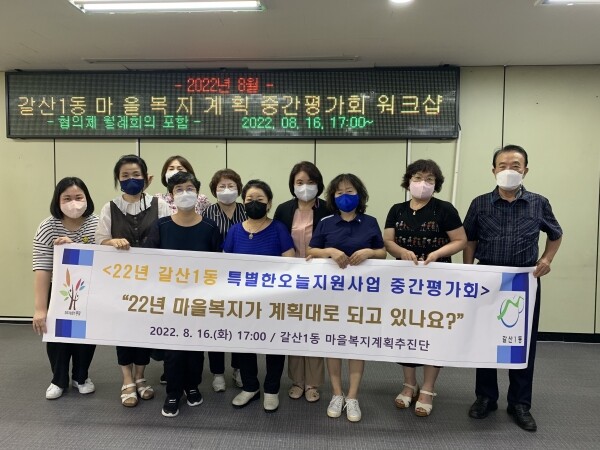 이번 워크숍은 자체점검 및 중간평가를 위해 마련한 것으로 주요 토의과제는 갈산1동 마을복지 사업의 계획 이행 여부다.