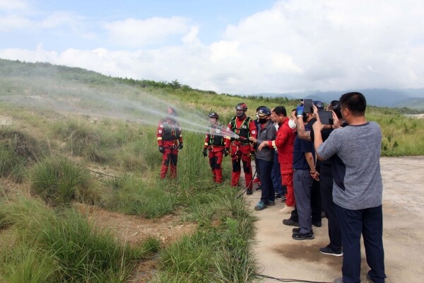 이번 시연회는 송전선로 훈증더미, 짙은 연무와 같이 산불진화헬기 운용이 어렵고 고지대, 암석지, 임도취약지와 같이 지상인력의 접근이 어려운 상황을 대비하기 위해 실시했다.