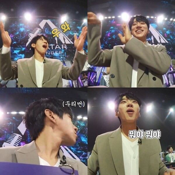 그는 잔망 넘치게 감탄사를 연발하며 무대를 즐기는 모습이다.