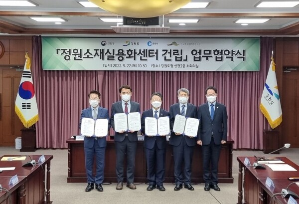 강원도, 산림청, 춘천시청, 한국수목원정원관리원은 22일 강원도청에서 정원소재실용화센터건립을 위한 업무협약을 체결했다.