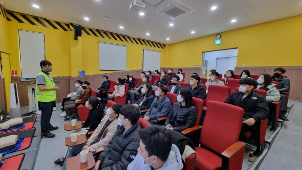 현장 근무자들과 관리 실무자들을 대상으로 고소작업, 중량물 작업, 전기 작업 및 밀폐공간 작업 시 주요 사고유형 및 주의사항에 대한 교육을 비롯해 화재 시 암막 공간 탈출 체험, 지진 체험, 심폐소생술 교육 등의 위험 상황에 대비하기 위한 체험교육이 이뤄졌다.