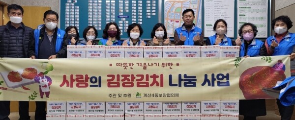 한편 계산4동 보장협의체는 취약계층 15세대에 매월 밑반찬을 지원하고 복지사각지대를 발굴해 부식품 세트를 전달하는 등 어려운 이웃들을 위해 활동하고 있다.