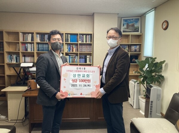 이날 기부한 사랑의 성금은 성만교회 교인들이 연말을 맞아 지역사회의 어려운 이웃을 위해 자발적으로 마음을 모아 마련한 것으로 성만교회는 매해 연말마다 이와 같이 뜻깊은 나눔을 이어가고 있다.