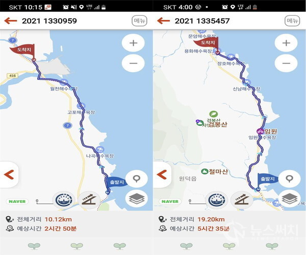 [뉴스써치] 해파랑길 중 경상북도 구간은 총 18코스로 이루어져 있다. 경주구간 3개 코스(10~12코스), 포항구간 6개 코스(13~18코스), 영덕구간 4개 코스(19~22코스), 울진구간 5개 코스(23~27코스)로 구성된다.