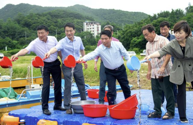 [뉴스서치] 제천시와 자율관리어업연합회는 30일 금성면 성내리 선착장 일원에서 김창규 제천시장, 박영기 시의장, 김진환 산업건설위원장 및 시의원, 어업 관계자 등 40여 명이 참석한 가운데 청풍호 내 수산자원 확보를 위한 뱀장어․쏘가리 치어방류 행사를 열었다.