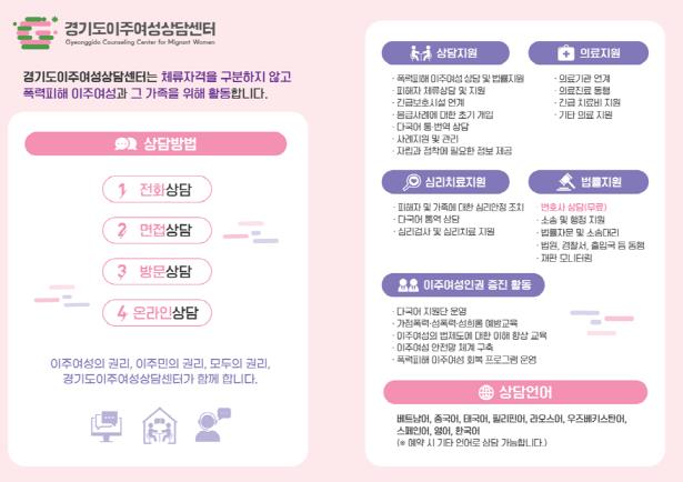 관련 자세한 정보는 경기도이주여성상담센터 누리집 또는 경기도 누리집에서 확인할 수 있다.