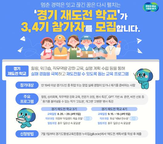 [뉴스서치] 경기도와 경기도평생교육진흥원은 오는 7월 1일부터 ‘2025년 경기 재도전학교’ 제3기와 제4기 참가자를 동시에 모집한다.