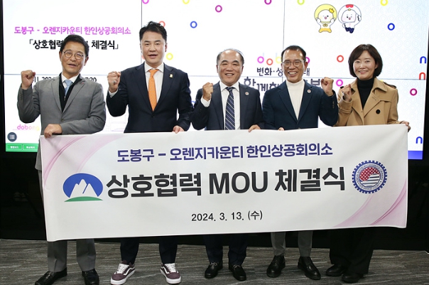 협약식은 오언석 도봉구청장을 비롯해 오렌지카운티 한인상공회의소 짐구 회장, 미주 한인상공회의소 총연합회 노상일 수석부회장 등이 참석한 가운데 진행됐다.