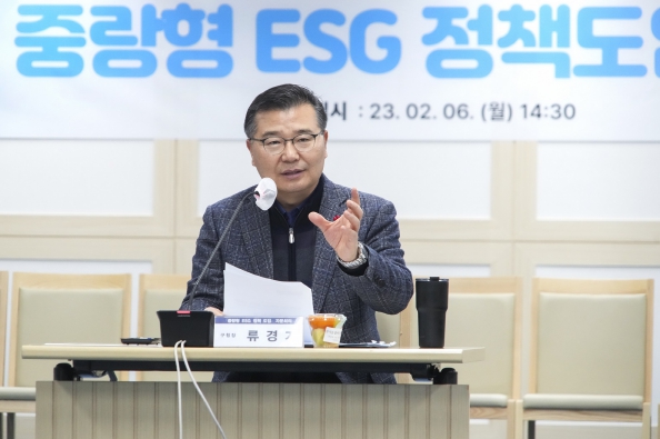 ▲ 작년 2월 열린 ‘중랑형 ESG 정책 도입 전문가 자문회의’에서 발언하고 있는 류경기 구청장 |