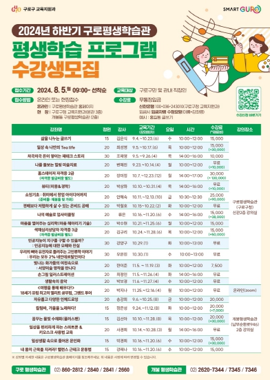 [뉴스서치] 구로구가 이달 5일 9시부터 하반기 평생학습 프로그램 수강생 425명을 선착순 모집한다.