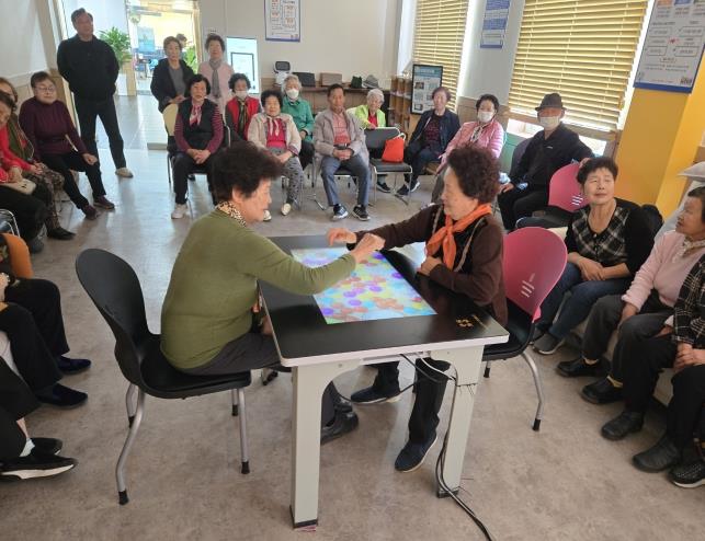 ‘AI 사랑방’은 지역주민 누구나 방문해 디지털기기를 체험할 수 있을 뿐만 아니라 전담 인력이 상주하며 어르신들을 위한 키오스크, 스마트폰 사용 교육과 스마트 테이블, 증강현실(AR) 스포츠 기기를 활용해 신체활동, 인지력 향상을 위한 정기적인 프로그램을 운영하고 있다.