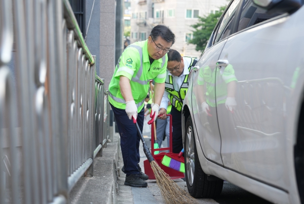 류경기 구청장도 26일 아침 면목본동 일대를 찾아 주민들과 함께 빗자루를 들었다. 이면도로와 골목길 총 640m를 구석구석 쓸고 방치된 위험 요소나 불편 사항이 없는지도 꼼꼼히 살폈다.