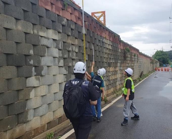 B시의 경우는 도로변 보강토옹벽의 전도 및 도로상부 균열이 발생했다고 안전예방핫라인에 접수됐다. 안전점검 결과 허용 기울기가 초과되고 상부도로에 인장균열이 다수 확인돼 집중호우시 옹벽 추가 전도 우려가 있었다. 이에 따라 해당 시에서 하부도로를 통제하고 옹벽을 보강해 안전조치를 진행하도록 컨설팅했다.