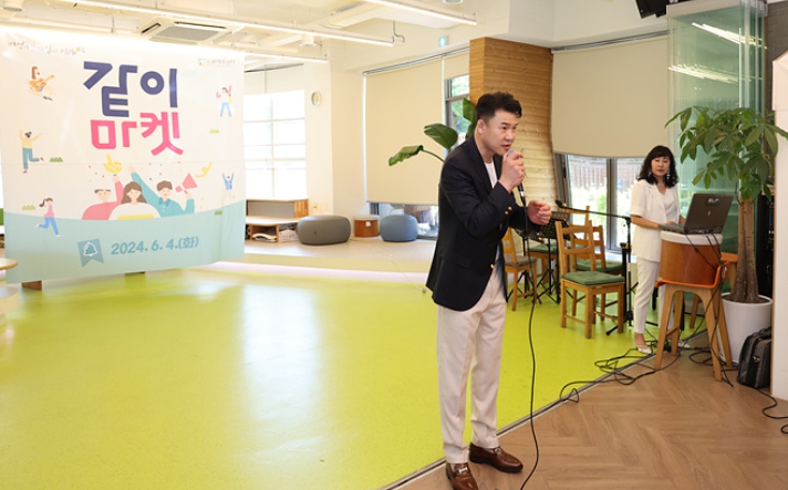 ▲ 오언석 도봉구청장이 ‘같이 마켓’ 행사에서 인사말을 하고 있다 |