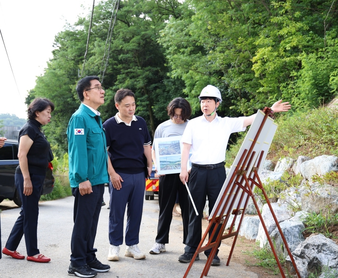 문 구청장은 이날 가장 먼저 궁동 산사태 예방공사 준공 현장을 방문해 구민의 안전을 직접 챙기고 나섰다.