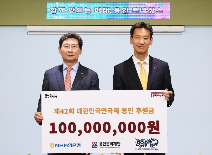 이상일 시장은 “해외에서도 많은 관심을 보이고 있는 ‘제42회 대한민국연극제 용인’과 대한민국에서 최초로 용인에서 선보이는 ‘제1회 대한민국 대학연극제’에 NH농협은행 용인시지부의 후원은 큰 힘이 될 것”이라며 “지역의 구성원으로서 다양한 분야에 많은 도움을 주고 있는 농협중앙회 용인시지부에 감사하다”고 말했다.
