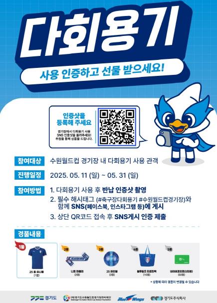 한편, 경기도와 경기도주식회사는 수원삼성 블루윙즈를 시작으로 도내 총 18개 프로스포츠단을 대상으로 다회용기 보급 확대를 검토하고 있다.