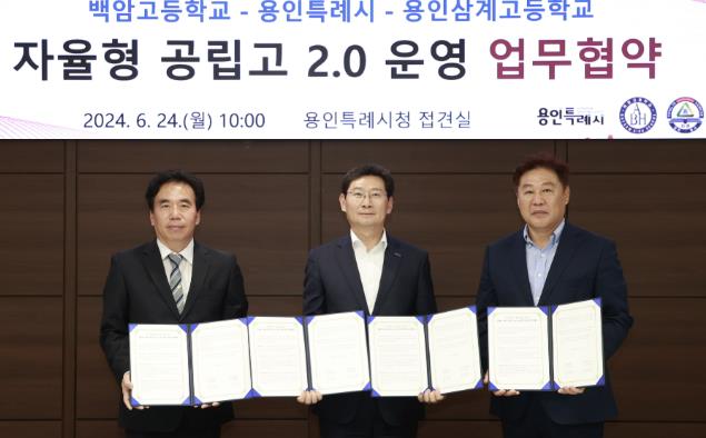 이 시장은 “시와 지역 내 대학교·기업들이 함께 인재 육성에 적극 참여할 수 있도록 협업 시스템을 구축해 백암고등학교와 용인삼계고등학교의 자율형 공립고 운영이 공교육 발전의 모범적 모델이 되도록 지속적인 관심을 기울이고 지원하겠다”고 덧붙였다.