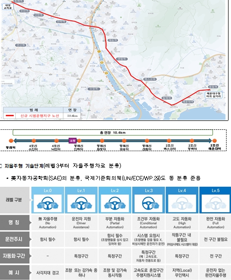 [뉴스서치] 부산시는 오늘(2일) 자로 동래구 내성교차로(동래역)에서 해운대구청어귀삼거리(도시철도 2호선 해운대역)를 잇는 간선급행버스체계(BRT) 구간(10.4km)이 국토교통부로부터 자율주행자동차 시범운행지구로 지정됐다고 밝혔다.