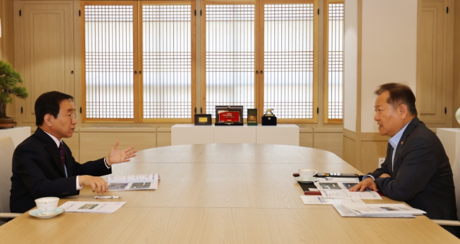 | ▲ 이상민 장관에게 현안 사업을 건의하는 김문근 군수 |