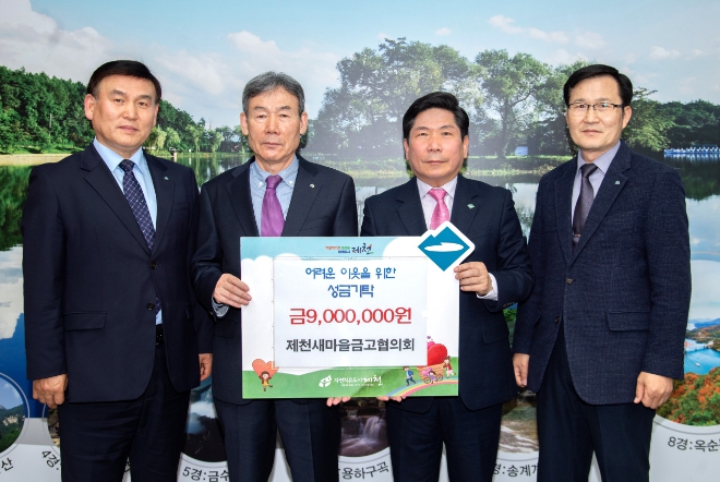 제천새마을금고협의회는 ‘사랑의 좀도리 운동’의 일환으로 매년 제천시 취약계층에 꾸준히 성금을 기부하고 있으며, “앞으로도 어려운 이웃을 위한 사회공헌활동을 지속적으로 펼쳐 나가겠다.”고 말했다.