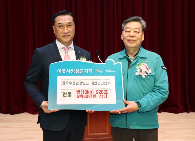 [뉴스서치] 수산업경영인 태안군연합회가 태안군에 ‘사랑의 쌀’을 기탁하며 이웃사랑의 마음을 전했다.
