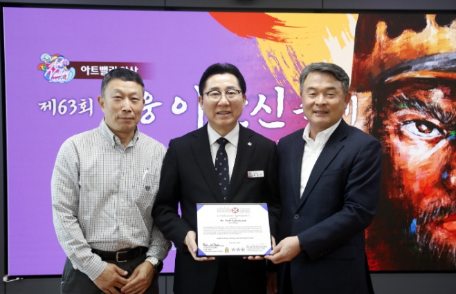 이번 감사패 수여는 ‘성웅이순신축제’에 주한미군을 적극 초청하는 등 한미동맹을 공고히 하고자 노력한 공로를 인정받아 이뤄졌으며, 아산시를 방문한 미 육군 제8군 사령부 정치군사고문인 김태업 장군을 통해 전달됐다.