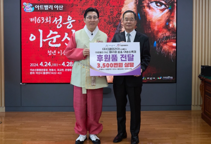 | ▲ 아산시, ㈜디엠코리아로부터 ‘성웅 이순신 축제’ 후원품 전달받아 |