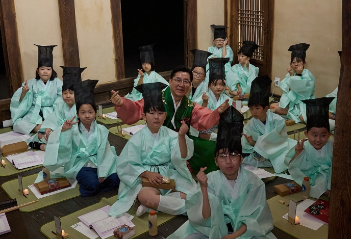 마을 중심인 건재고택 안채에서는 옛 서당을 보여주는 외암서당 프로그램이 진행됐다. 특히 박경귀 시장이 훈장으로 참석해 아이들에게 천자문을 알려주고 함께 책거리 전통문화를 체험했다.