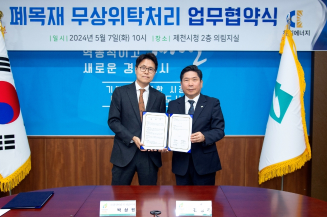 [뉴스서치] 제천시는 7일 (주)천일에너지와 자원관리센터 폐목재 무상위탁처리 업무협약을 체결했다.