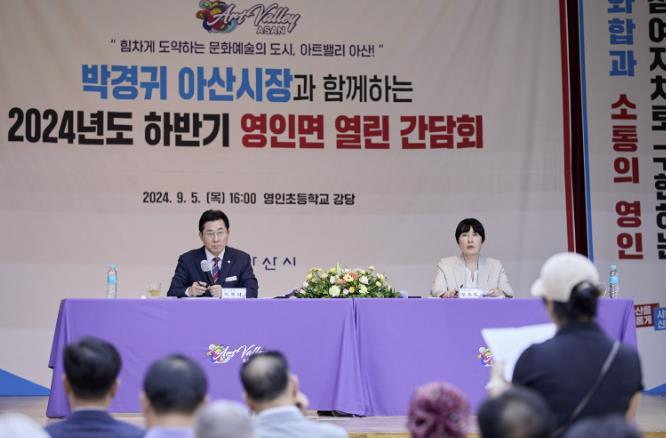 [뉴스서치] 박경귀 아산시장과 영인면 주민들의 2024 하반기 열린간담회가 5일 영인초등학교 강당에서 열렸다.