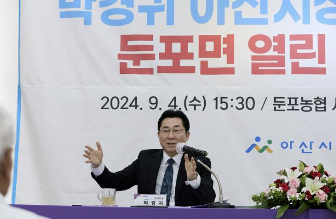[뉴스서치] 박경귀 아산시장은 4일 둔포농협 서부지점 대회의실에서 ‘2024 하반기 둔포면 열린간담회’를 개최했다.