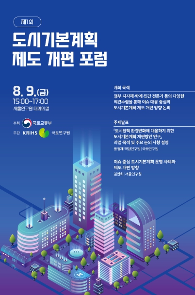 [뉴스서치] 국토교통부는 8월 9일 오후 3시 서울연구원에서 '제1회 도시기본계획 제도 개편 포럼'을 개최한다.