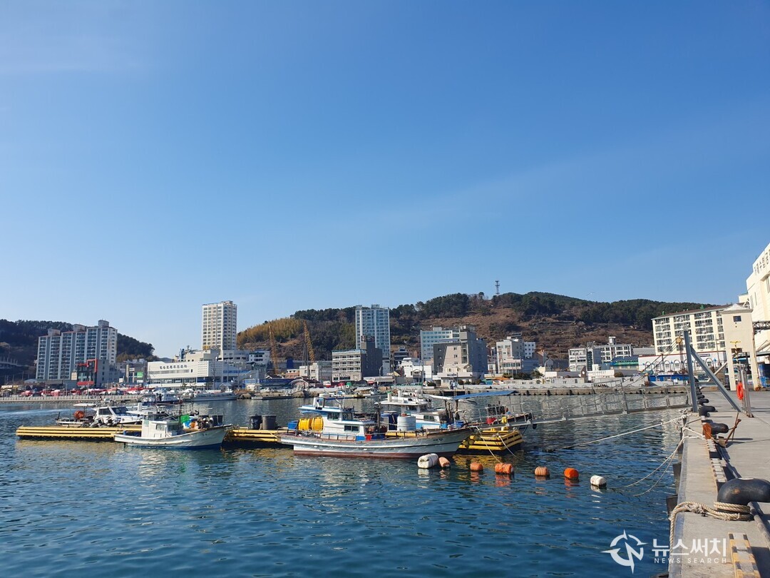 다시 트레킹을 재개하여 능포항 방향으로 내려갔고 오후 2시 12분 ‘능포항’에 도착하였다. ‘능포항’에는 ‘능포수변공원’이 조성되어 있고 방파제 포구 바로 인근에 능포동 도심마을이 자리 잡고 있다.
