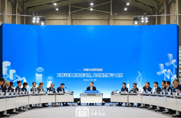 [뉴스서치] 윤석열 대통령은 6월 20일 오후 포항 블루밸리산단 이차전지종합관리센터에서 개최된 「제9차 지방시대위원회」 회의를 주재했다. 오늘 회의는 윤석열 정부의 국정 목표인 ‘대한민국 어디서나 살기 좋은 지방시대’ 구현의 핵심 과제인 기회발전특구를 최초로 지정하기 위해 개최됐다.