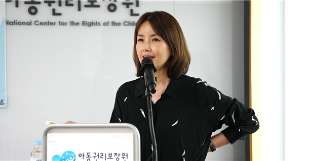 ▲ 아동권리보장원 홍보대사 신애라 씨는 특강에서 아이 양육의 사회전체의 책임을 강조했다. |