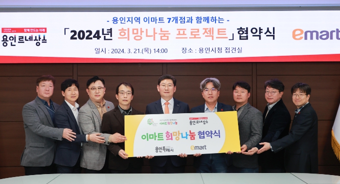[뉴스서치] 용인특례시와 용인지역 내 이마트 7개 지점이 지난 21일 ‘2024년 희망나눔 프로젝트’ 업무협약을 체결하고 소외계층 돕기에 적극 힘을 모으기로 했다.