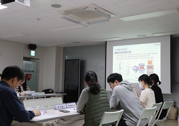서울 용산구가 지난 5일 구 보건소 심폐소생술 교육장(녹사평대로 150, 지하 1층)에서 서울시 자치구 최초로 감염병 위기 대응 모의훈련을 실시했다.