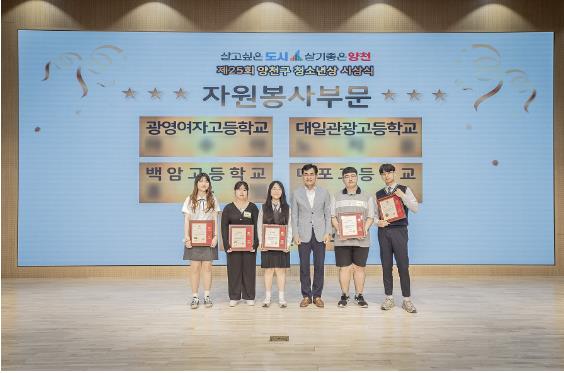 각 부문별 지역사회의 귀감이 되는 수상자가 나와 눈길을 끈다. 우선 효행예절 부문에서 다문화 가정으로 편찮으신 아버지를 극진히 돌본 고1 학생, 희망성실 부문에서는 난민가정으로 어려운 가정형편에서도 성실하게 생활하며 타의 모범이 된 고3 학생 등이 선정되었으며, 봉사협동 부문에는 구 특화사업인 청소년 학습멘토링 멘토, 자원봉사센터 행정봉사 등에 꾸준히 참여한 대학생이 수상자로 선정됐다.