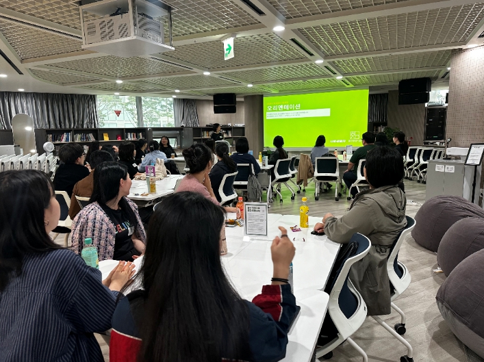 ▲ 지난 19일 니트컴퍼니 입사자들이 오리엔테이션에 참석한 모습 |