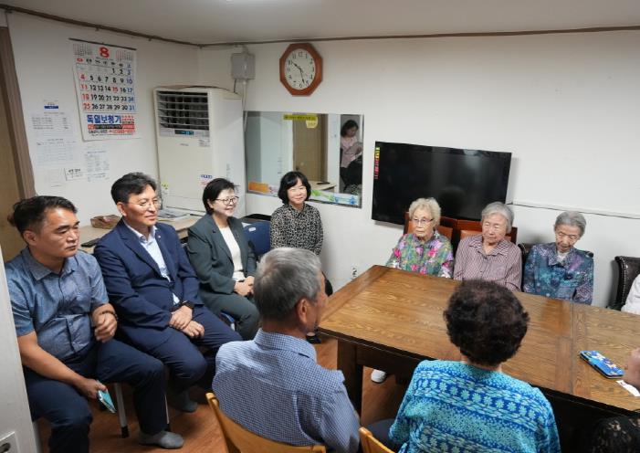 송중 경로당 김용운 회장은 “구청장이 직접 찾아와서 무더위에 잘 지내는지 확인해 주고 경로당 운영도 신경써줘서 고맙다”며 “앞으로도 안전하게 여름을 보낼 수 있도록 잘 챙겨줬으면 좋겠다”고 말했다.