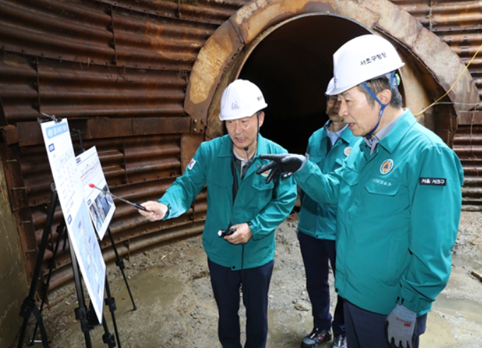 전성수 서초구청장은 1일 오전, 저지대 침수취약지역인 강남역 일대 침수 피해 예방을 위한 서운로 하수암거 신설 공사 현장을 방문했다. 특히, 직접 안전모와 장화 등을 착용하고 지하 5m 깊이의 현장으로 내려가 관계자로부터 공사 추진현황을 보고받고 강남역 일대 침수 해소 대책 등 수해 대비 현황을 꼼꼼히 점검했다.