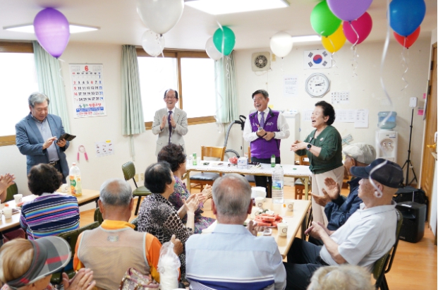 ▲ 올여름 무더위 쉼터로 운영될 경로당을 방문한 이필형 동대문구청장 |