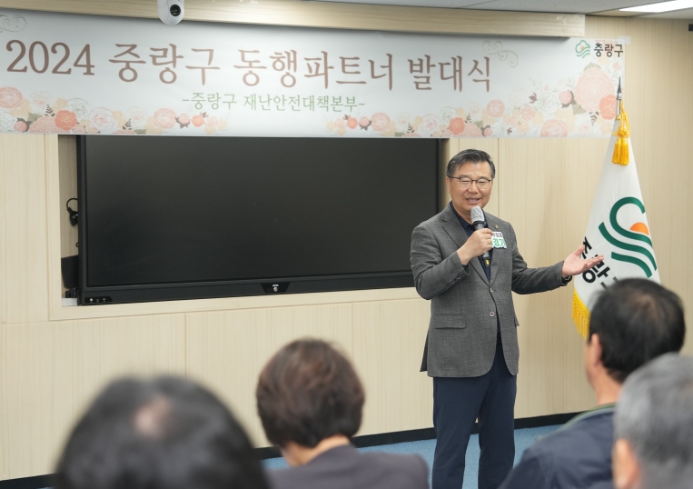 [뉴스서치] 중랑구가 지난 7일 집중 호우시 자력 탈출이 어려운 재해취약가구의 신속한 대피를 돕는 ‘동행파트너’ 발대식을 개최했다.