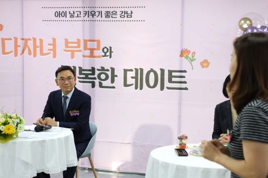 [뉴스서치] 꿈이 모이는 도시, 미래를 그리는 강남구가 24일 도곡정보문화도서관에서 다자녀 부모 21명을 초청해 구청장과 함께하는 행복한 데이트를 개최했다.