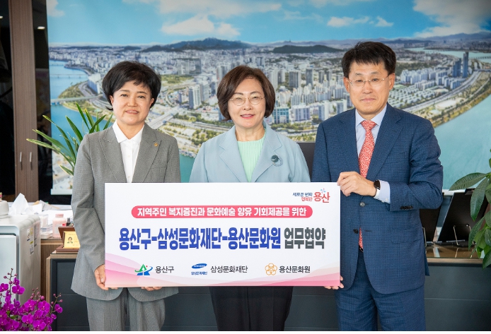 [뉴스서치] 서울 용산구가 지난 29일 삼성문화재단, 용산문화원과 함께 지역주민 문화복지 증진과 문화예술 향유 기회 확대를 위한 업무협약을 새로이 체결했다. 기존 협약의 성공적인 종료 이후 지속적인 협력관계를 이어가고자 마련했다.