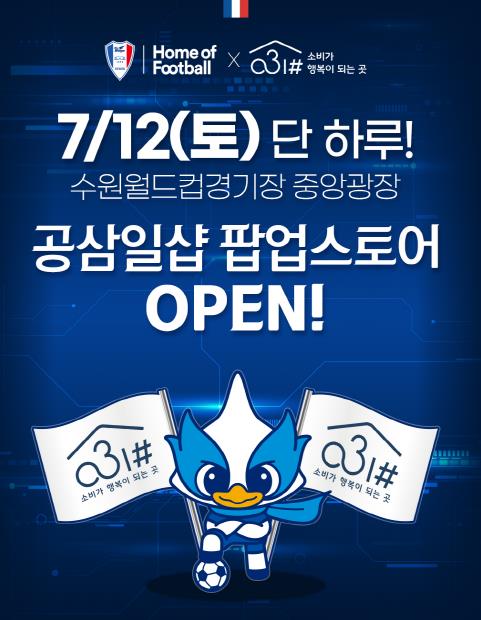 [뉴스서치] 경기도와 경기도주식회사가 운영하는 경기도 사회적경제 쇼핑몰 ‘공삼일샵(031#)’이 프로축구단 수원삼성블루윙즈와 협업해 12일 수원 홈 경기에서 공삼일샵(031#) 홍보부스를 운영하고 고객 대상 이벤트 등을 진행한다.